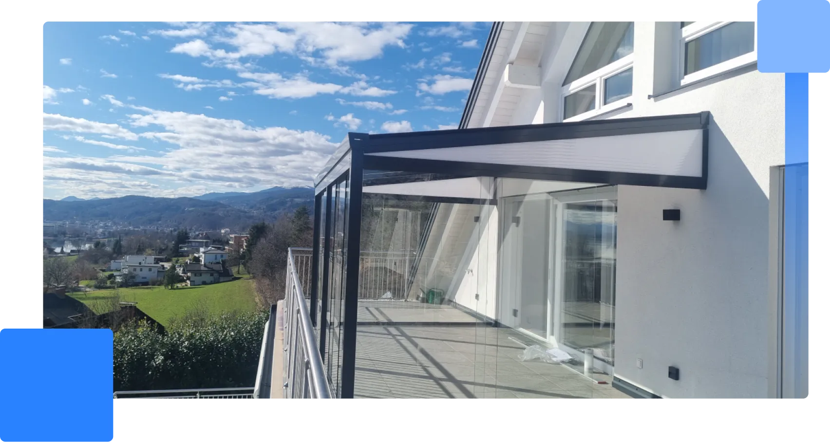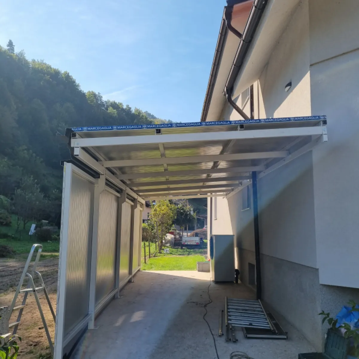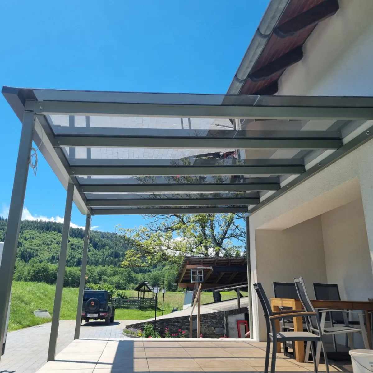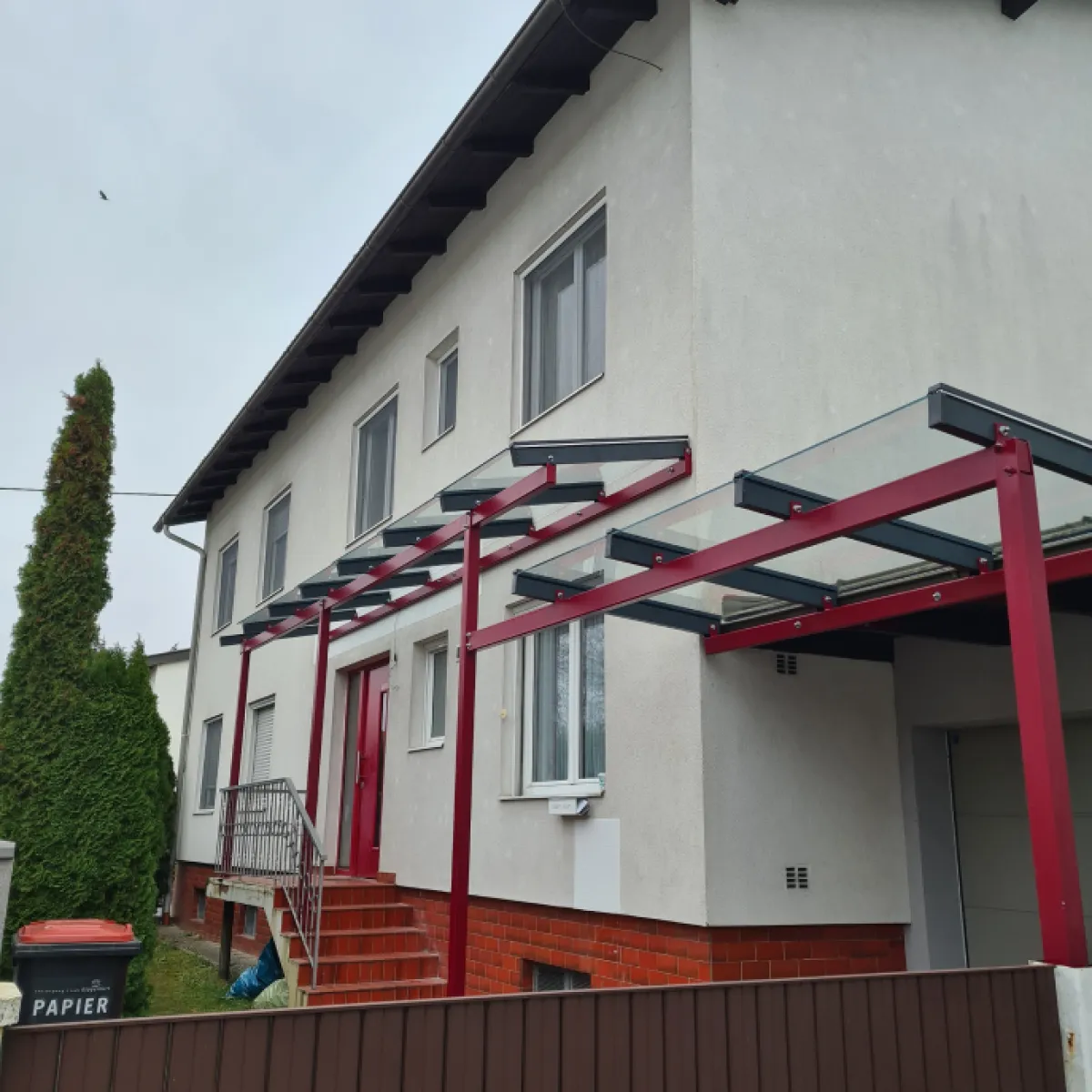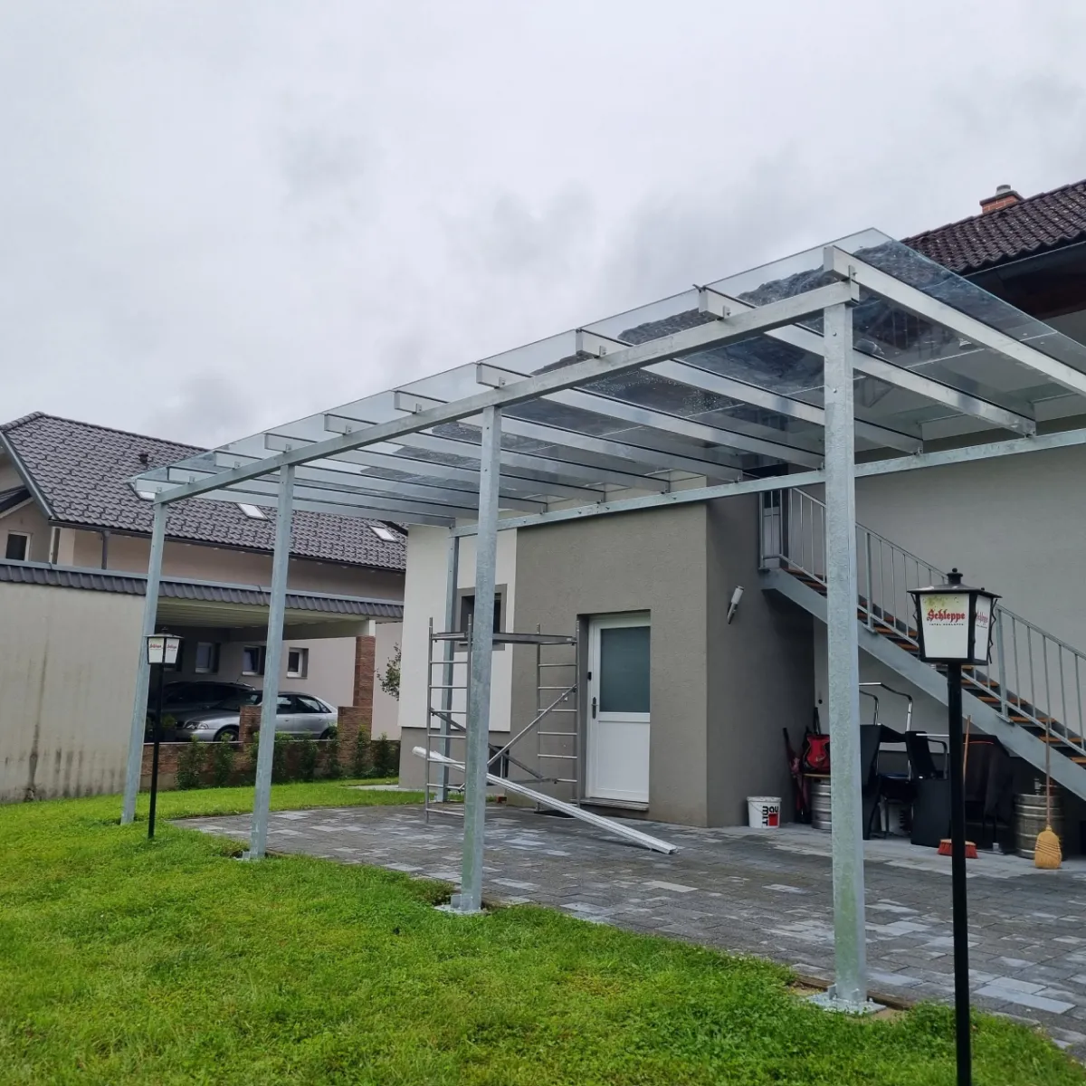 Naši nadstreški ščitijo vaše vozilo in vhod pred vremenskimi vplivi, kot so dež, sneg in UV žarki.
